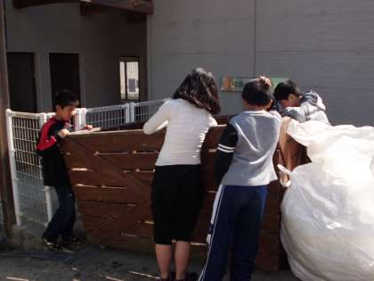 空き缶を集めて換金し,地域の施設へ車いすを贈る予定です。