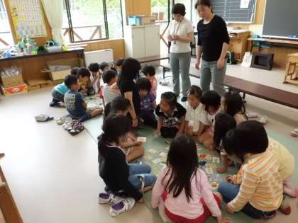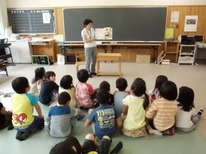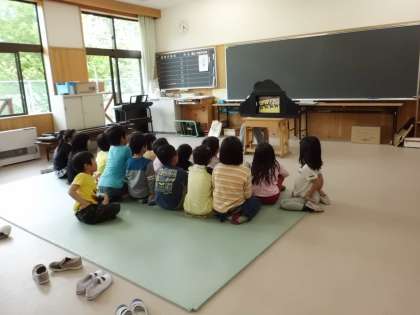 1年生の子ども達は「どんなことをするのかな?。」と,とても楽しみにしていました。今日は本の読み聞かせを聞いたり,紙芝居を見たり,指遊びなどをしたりしました。みんな,笑顔で参加していました。