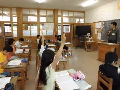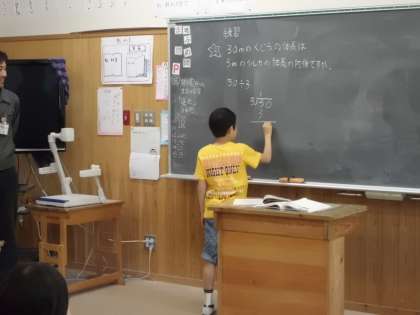 わり算の学習をしています。(2けた)÷(1けた)の筆算にも慣れてきて,今日から(3けた)÷(1けた)の筆算に挑戦です。みんなで解き方を考える中で,各自が積極的に自分の考えを発表していました。