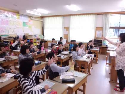 あいさつなど気持ちを表す言い方の学習をしました。その中で英語でのじゃんけんに取り組みました。「勝った!」「負けた!」と歓声をあげながら楽しく活動していました。