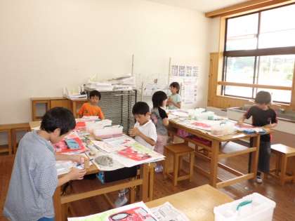 周りのお友達といろいろなお話をしながら仕上げていました。