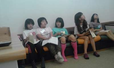 5年生の長期宿泊は2日目の朝を迎えました。全員元気に起床しました。写真は,朝の集いの前に少しほっこりしているところです。