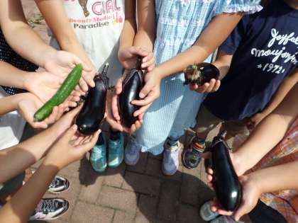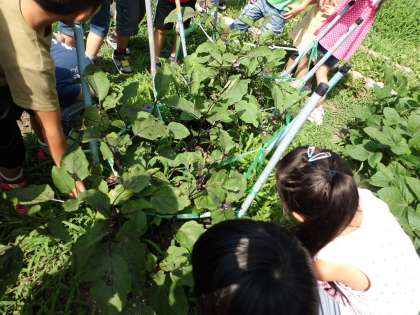 今日は,ナスとキュウリを収穫しました。