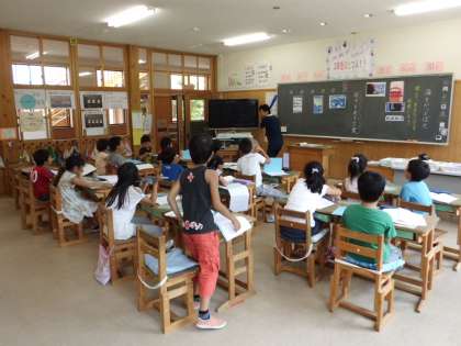 写真は,3年生の授業の様子です。国語の授業です。暑さ知らずの子どもたち。元気に手を挙げて発言していました。