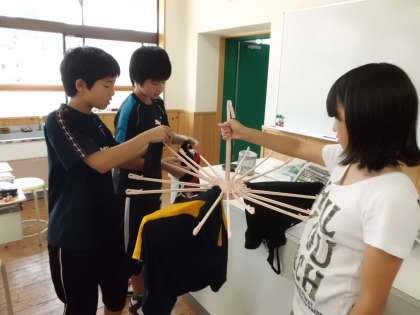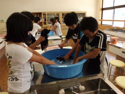 家庭科の学習で洗濯をしました。手洗いの実習です。