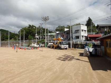 運動場では,防球ネット設置工事が急ピッチで進んでいます。完成すればより安全に教育活動ができるようになります。近隣の皆様,地域の皆様,関係の皆様にはあとしばらくご不便,ご迷惑をおかけいたしますが,ご理解のほどよろしくお願いいたします。