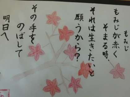 道徳で「祖母のつえ」という資料で「生命」の学習をしました。その後「生きる」をテーマに詩を書きました。また,教室に掲示しています。ご覧ください。