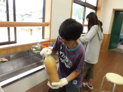 子どもたちは,「本当にできるのかな?」と心配をしていましたが,とても良い状態の石けんが出来上がりました。
