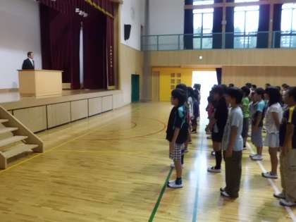 今日は,前期の最終日。前期の終業式を行いました。校長先生は,後期に向けて一人ひとりが頑張ろうとお話しされました。