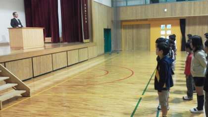 後期始業式を行いました。校長先生は,「みんなのお手本になれることを見つけよう。そして,後期も頑張りましょう。」とお話しされました。終業式と同じように立派な態度でお話を聞いていました。
