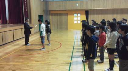 続いて昨日行われた陸上記録会で入賞した児童の表彰式を行いました。記録会に参加した児童全員,とってもよく頑張りました。