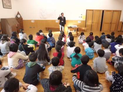 今日の朝会では,校長先生が学習発表会でのみんなの頑張りをほめられました。そして,学習発表会での「大きな声で はっきり ゆっくり」というめあてをこれからも大切にしましょうとお話されました。