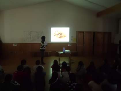 続いて「ほっとデー」。下垣先生から「食べ物がもったいない」というテーマで,カレーライスを例に挙げてのお話がありました。