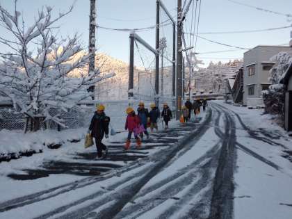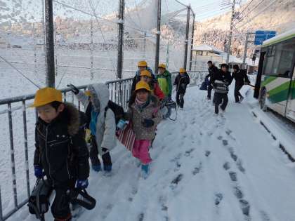 子どもたちは雪の中を登校してきました。今日は,雪遊びができるかな。安全に冬の自然を味わってくださいね。