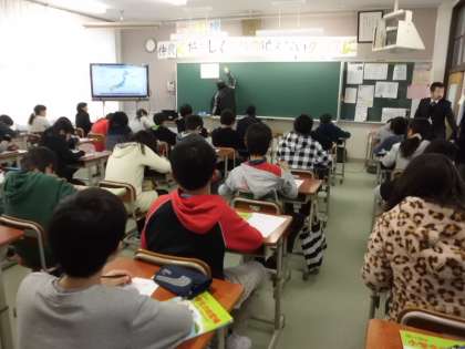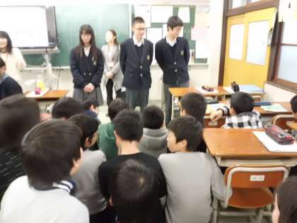 周山中学校のオープンスクールに行きました。はじめに「体験授業」を受けました。地図帳を使って,地理の学習をしました。学習のスピードの速さに,子どもたちは必死についていきながら,「楽しかったわ〜。」と話していました。