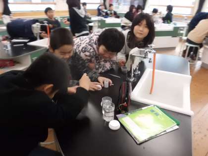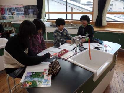「とける」とは,どうなることなのか?食塩,砂糖,砂を水の中に入れてかき混ぜ,違いを観察しました。