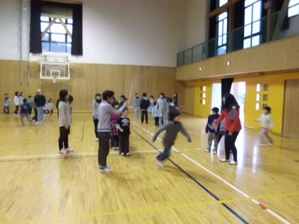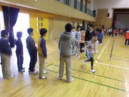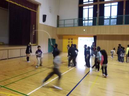 今日のおはようジャンプは,縦割り班での八の字とびです。高学年が低学年を上手にリードしながらとんでいます。これからどんどんとぶ回数が増えるでしょう。楽しみです。