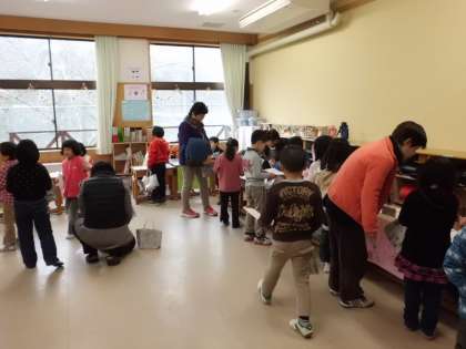 保育所のお友達を,1年生がお店屋さんごっこ遊びに招待しました。
