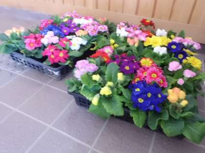 地域の方から花の苗をいただきました。どれもとってもきれいな春の色です。卒業式や入学式に飾らせていただきます。本当にいつもありがとうございます。