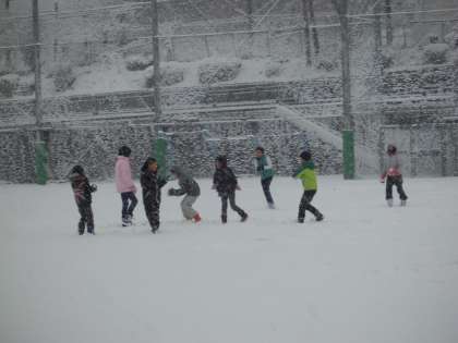 写真は,20分休みの様子です。子どもたちは,歓声を上げながら雪遊びをしています。これからもっと積もるのかなあ。