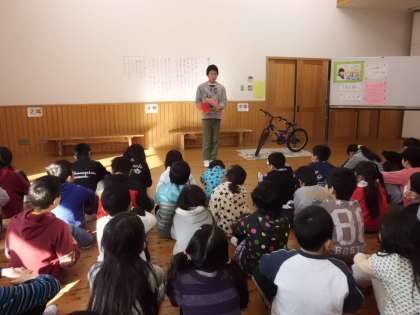 今日の朝会は,まずは「ほっとデー」。石川先生が,小保方晴子さんの大発見のニュースから「あきらめないこと」「続けること」「力を合わせること」をキーワードにお話しました。そして,ひかり学級のお友達もこの3つのことを大切に自転車に乗ることを頑張っていることを伝えました。