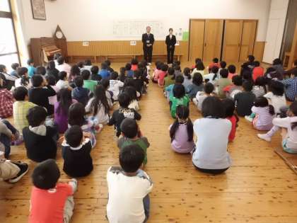 次に今週の予定を確認し,最後は校歌歌いました。やわらかい声で歌うようにしました。