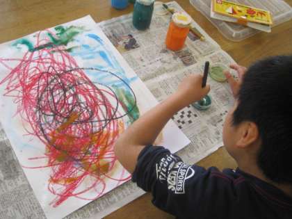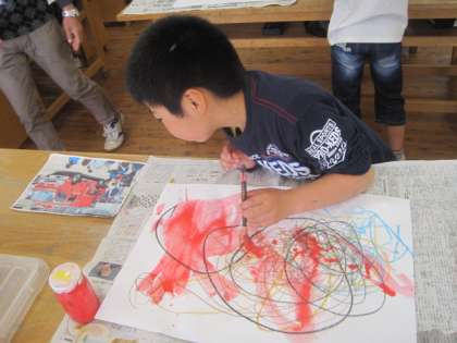 「消防車の色」と喜びながら,楽しく絵をかくことができました。