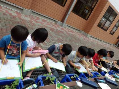 あんなに小さかった芽が,今では大きな葉をつけて,少しずつ大きくなっています。