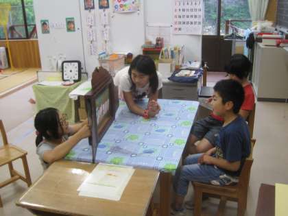 6年生が遊びに来てくれました。紙芝居をリクエストして,スパゲッティーのお話を読んでくれました。いきなりのお願いを快く引き受けて,上手に紙芝居を読んでくれました。