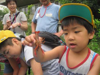 野外学習では,ザリガニやイモリ,ヒトデ,チョウとたくさんの生き物に触れ合うことができ,大満足の1日になりました。