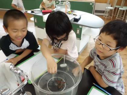 今日は,生き物のかんさつ名人!を目指して,ザリガニを観察しました。はじめはザリガニのはさみにこわがっていましたが,しだいに慣れてきてザリガニをつかんでいました。ザリガニと仲よくなれたので生き物係が育てます。