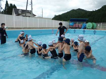 「やったぁ!!」という歓声が教室中に響き渡り,子どもたちはとびっきりの笑顔で水泳学習に取り組みました。