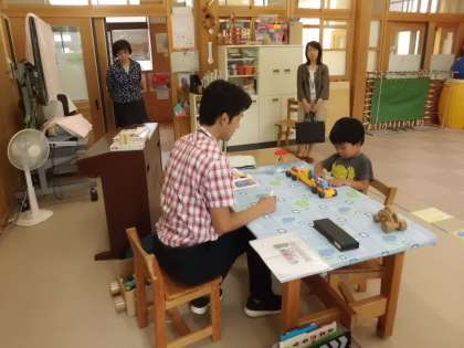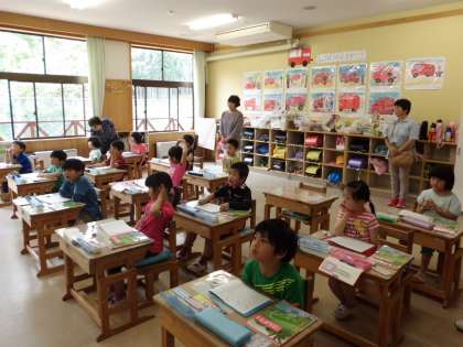 2校時に保育所の先生が1年生の様子を見に来てくださいました。1年生のみんなは,久しぶりの先生方の前で緊張しながらも張り切って勉強していました。保育所の先生方も1年生の頑張っている姿を見て安心してくださいました。