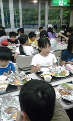 お待ちかね。夕食です。今日もいっぱい活動しました。しっかり食べて,ぐっすり眠って明日も元気に活動しましょう。