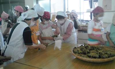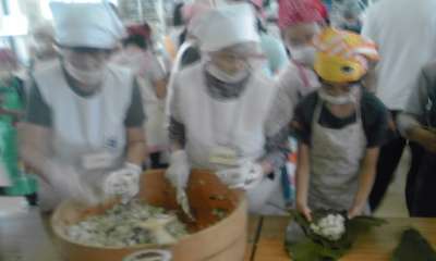 北桑田高校の家庭科室で調理実習をしています。「食改健康しゃくなげ」の方々を講師に招いて北桑田高校生の方々も一緒に調理しています。おいしい料理ができそうです。