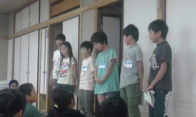 感動体験発表会。各班がグループ,係,そして自分のめあてを点検して,これからどのように活かすかを発表しました。