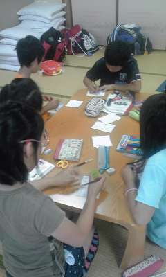 活動を支えていただいた先生へのお礼の手紙を書いています。