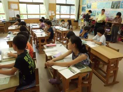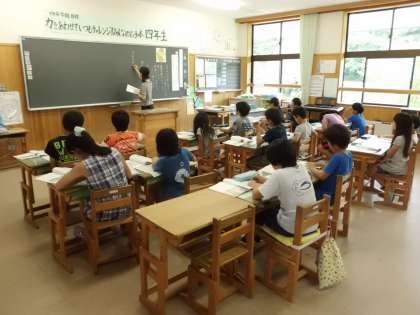 今日は,4年生の国語の授業を他の学校の先生が見に来てくださいました。国語科の『一つの花』の学習です。子どもたちは一生懸命学習していました。