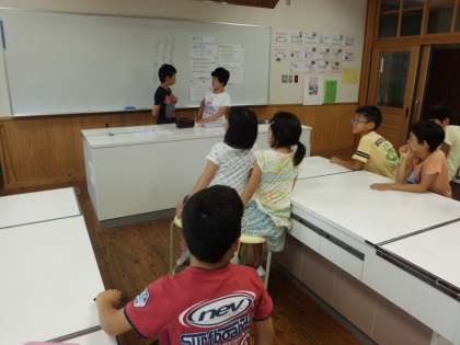今日の2校時目は地域班会です。地域班に分かれて,今までの振り返りや夏休みのくらしについて話し合いました。