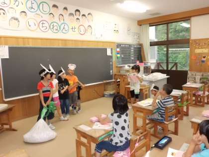今日,国語の時間に「おおきなかぶ」の劇の発表しました。