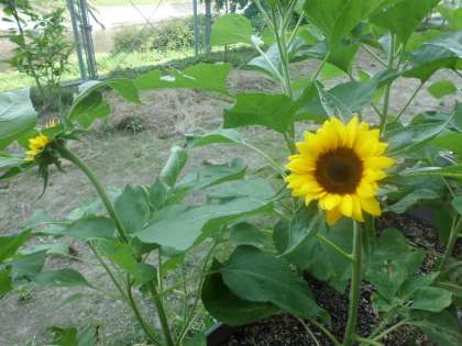 ヒマワリの葉を見て,「手の2倍はあるな。」と驚いていました。
