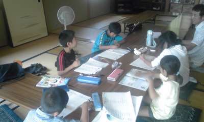 高学年と低学年子どもたちが一緒に学習しています。