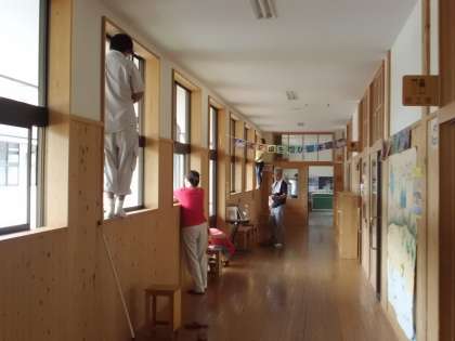 今日は,PTA美化作業を行いました。5・6年生の子どもたちと保護者・本部役員の方々,そして教職員とで校内の窓ガラスとトイレを中心に清掃しました。普段できないところもPTAの皆さんのお力できれいにしていただきました。