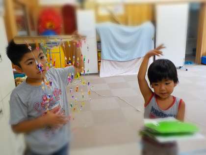前期後半が始まりました。二人とも元気に登校し,笑顔で授業を始めることができました。今日は,テレビ会議システムを使って京北第三小学校のお友達に夏休みのできごとや親子で作った作品についてお話しました。楽しかった夏休みの様子がよく伝わりました。