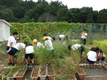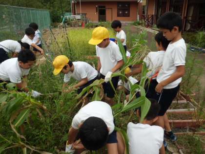 大きく育ったキュウリとポップコーンを引き抜いたり他の雑草を取ったりするのは大変でしたが,みんなで協力して準備することができました。