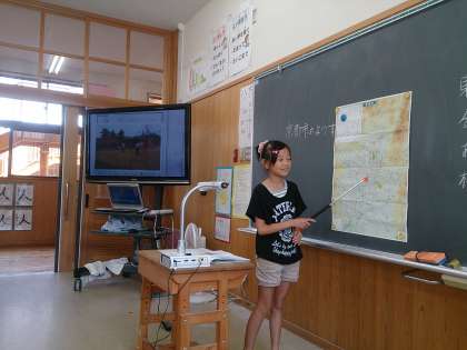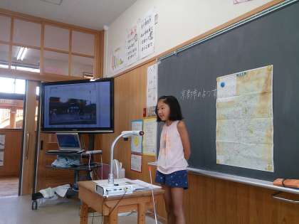 社会科で学習した「わたしたちの京都市」の発展学習として,夏休み中に行った京都市のまちの様子を発表しています。