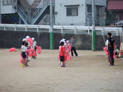 5時間目は,色別班会。今日の練習は大玉リレーと応援合戦です。どの色も気持ちを一つにして取り組んでいました。