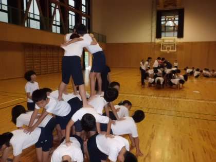 運動会に向けて組体操の練習が進んでいます。みんなで声をかけ合いながら,最初はできなかった技も成功するようになってきました。本番まであと少し。がんばります。