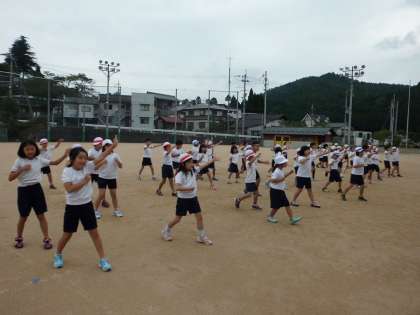 今日から,1・2・3年生のダンスの練習を運動場で行いました。