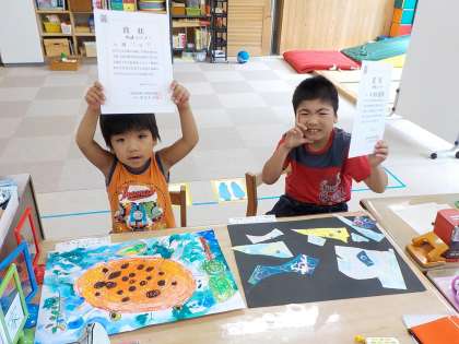 図画工作科に時間に一生懸命描いた絵が京都市絵画展に入選しました。朝会で2人とも入選していることを紹介してもらいました。教室に戻ってからも2人で大喜びしていました。これからもたくさん描いて,表現を楽しんでいってほしいと思います。